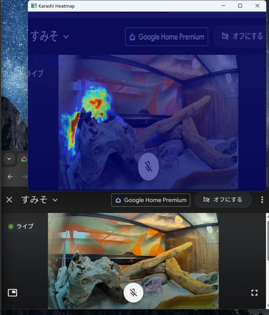 長時間観察すれば、からしのバスキング位置や活動パターンが可視化されます。