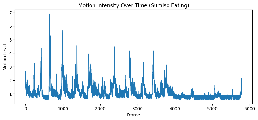 plt.title("Motion Intensity Over Time (Sumiso Eating)")
